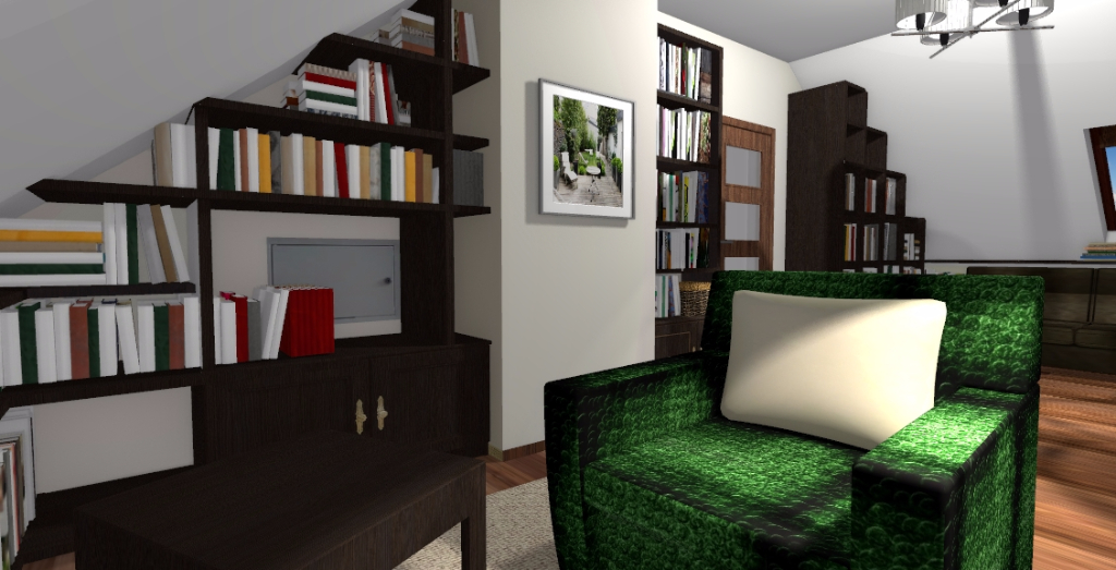 Gabinet w stylu angielskim w wersji nowoczesnej to połączenie przestrzeni i klasycznej zabudowy bibliotecznej wykonanej z naturalnego drewna
