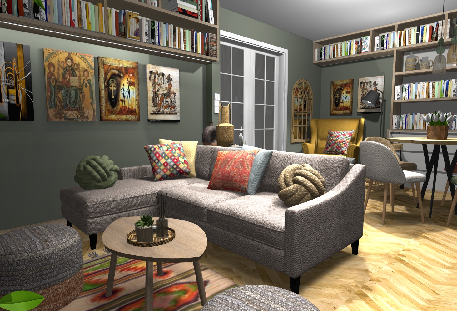 Kolorowy salon: czasami, wśród królujących szarości i kaszmirów zdarza się taki szalony projekt Młodej osoby absolutnie zafascynowanej klimatami etno i tańcem.